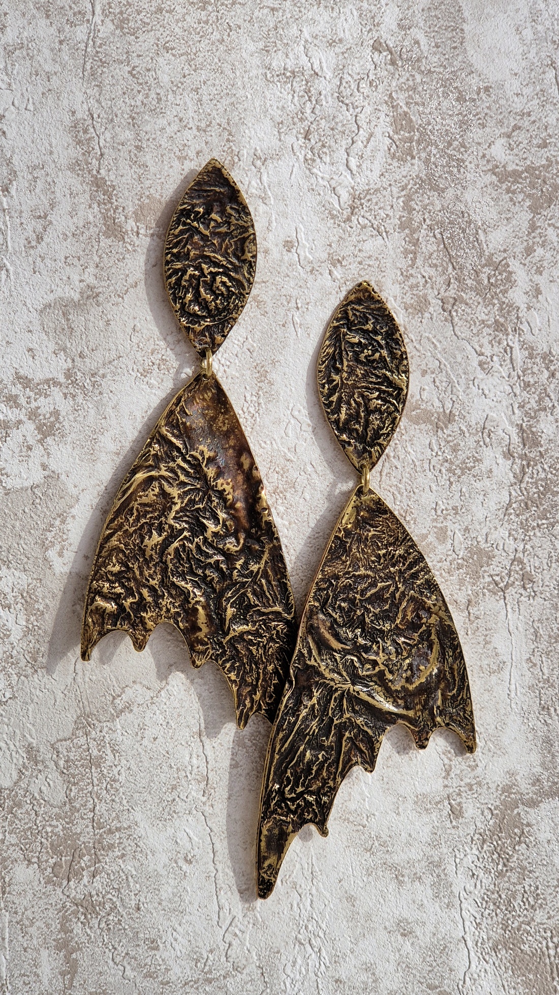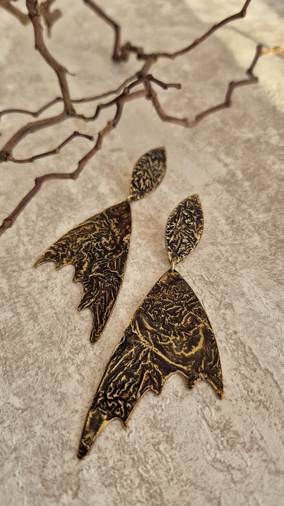 Mosiężne, ze srebrnymi (próba 925) sztyftami oraz barankami. Wykonane ręcznie, oksydowane, aby podkreślić piękną fakturę. Dla kobiety, która lubi niebanalne dodatki.