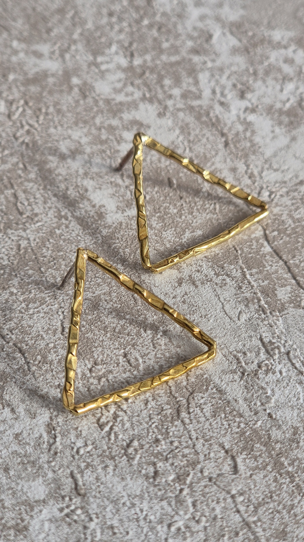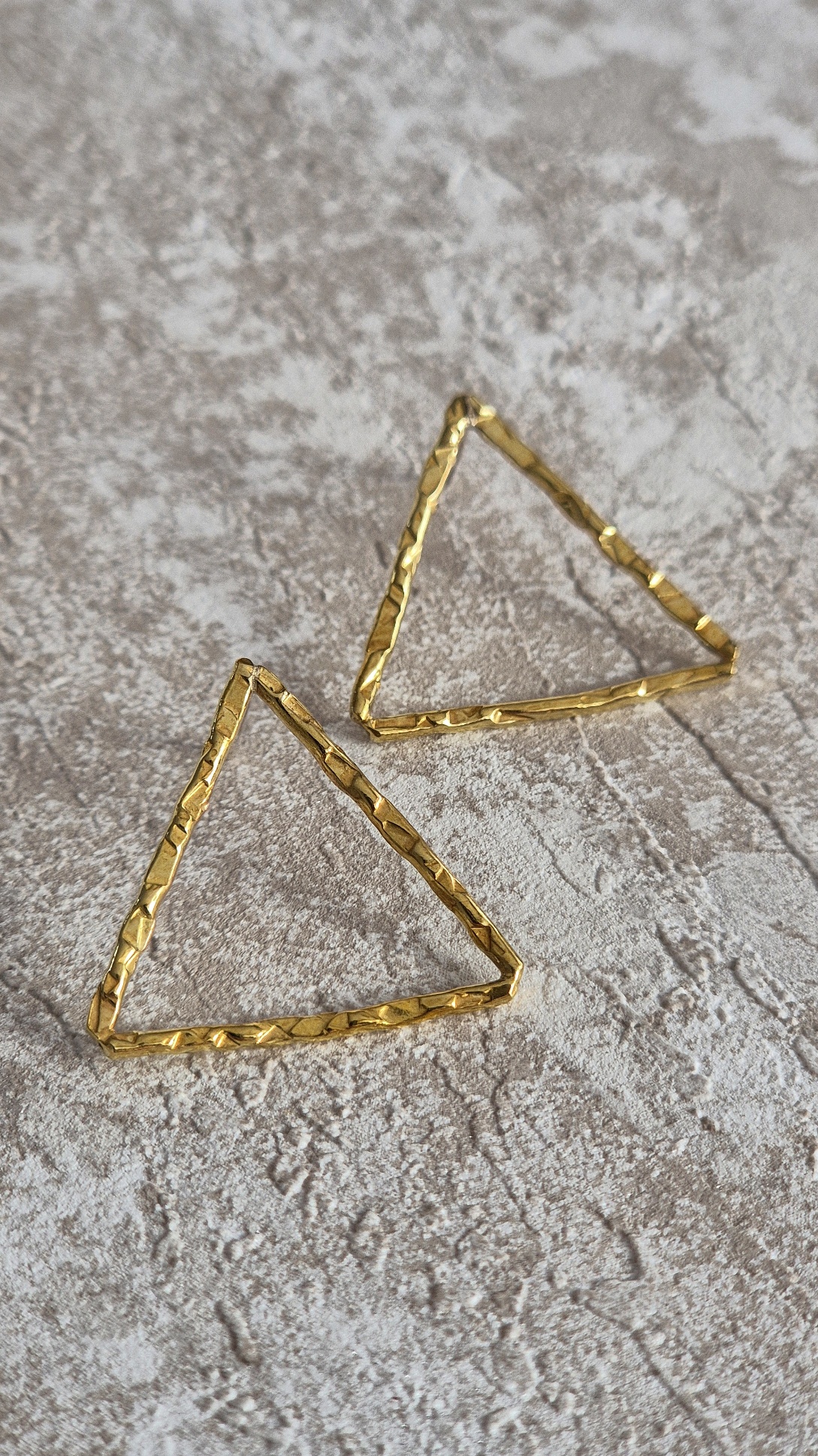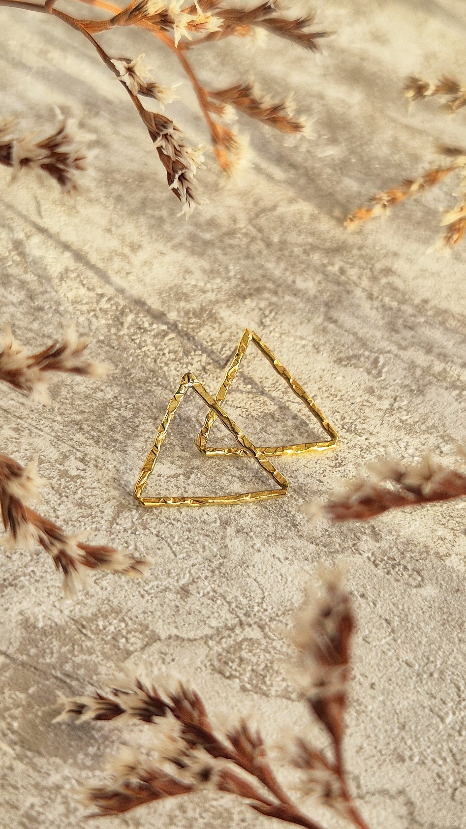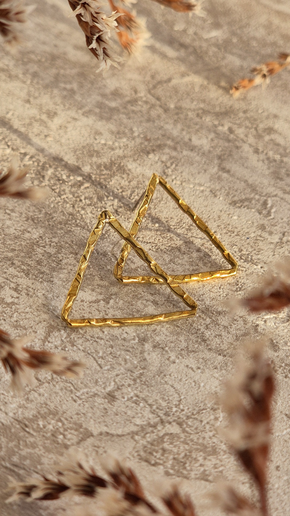 Delikatne, młotkowane kolczyki w kształcie trójkątów. Dla kobiety, która lubi niebanalne dodatki.